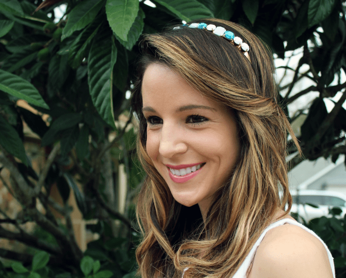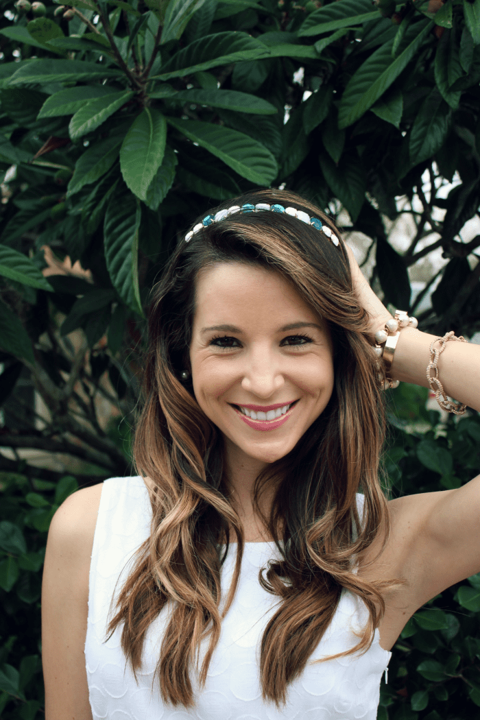 As for my hair, I used my handy dandy drybar 3-Day Bender 1.25″ Curling Iron and Money Maker Flexible Hold Hairspray. To add extra volume, I applied a liberal amount of drybar Southern Belle Voluming Mousse to my roots before curling, which did wonders for preserving my curls and volume in the midst of the burgeoning Florida humidity (yes, it has returned).Now, let’s talk about this regal headband… First of all, thank you, Shop Ban.do for sending me this perfectly preppy product to review. I’m obsessed. Secondly, the Crown Jewel Headband comes in two additional colors, Neon Yellow and Pink. Last but not least, this hair accessory is a dazzling 10mm metal plated headband, covered in beautifully colored crystals. Based on the previous information, what’s not to love? It’s the perfect added adornment for asserting your princess status year-round. But seriously, if this isn’t specifically a spring essential, I just don’t know what is.