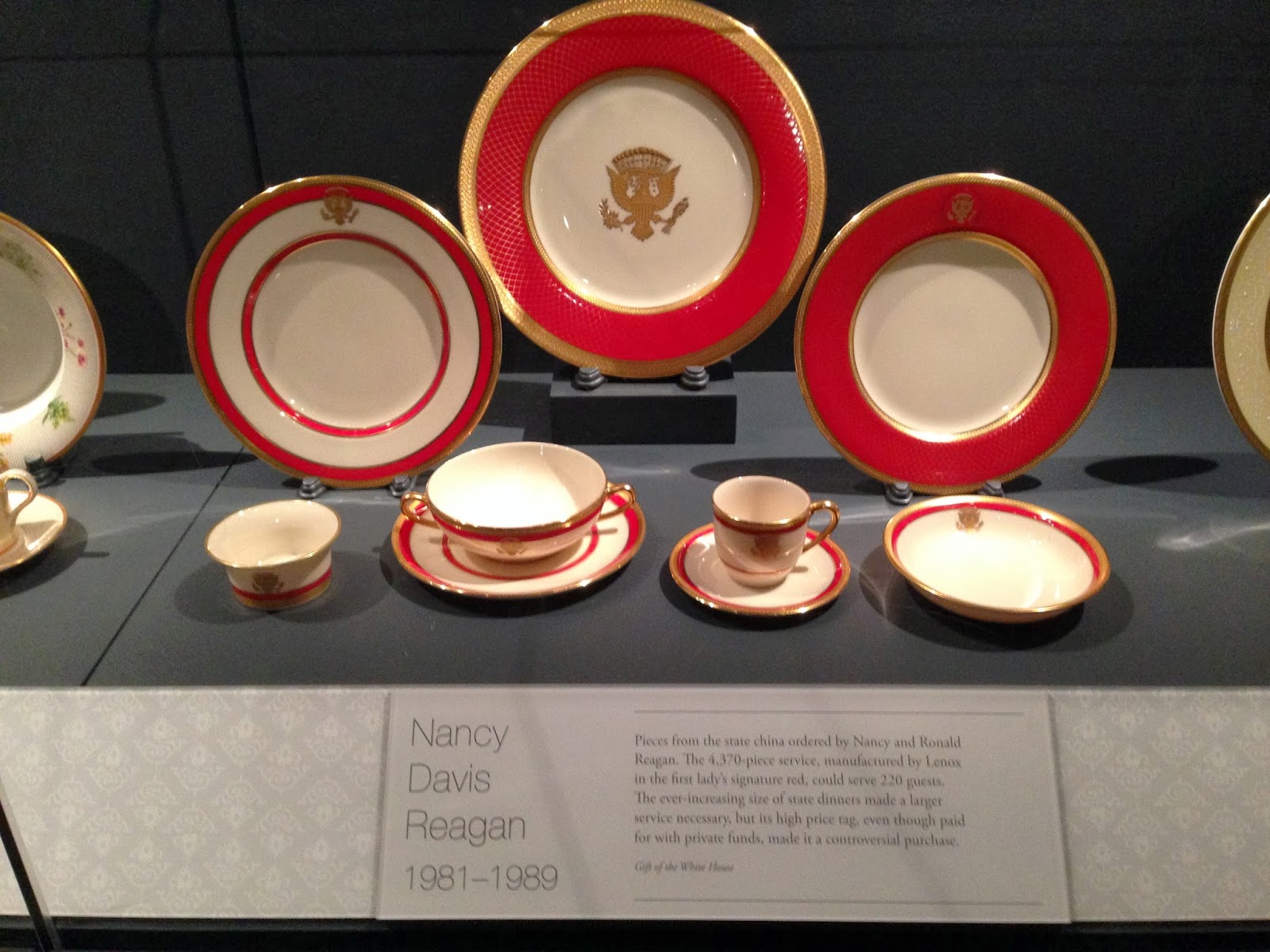One of my favorite First Lady’s china… stunning red and gold pattern. I knew Nancy Reagan had good taste.