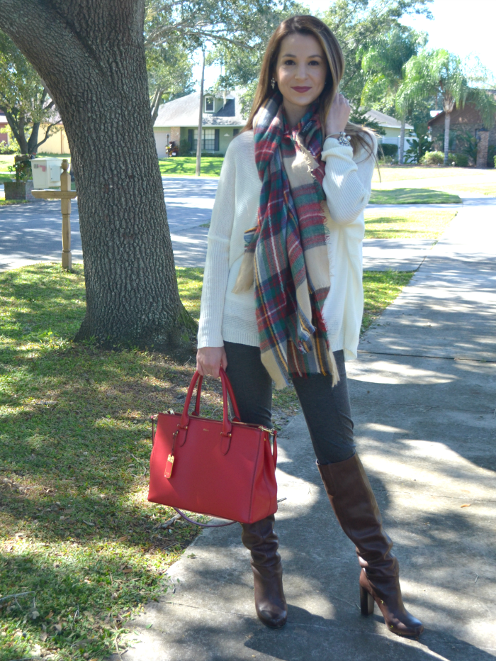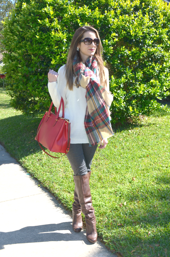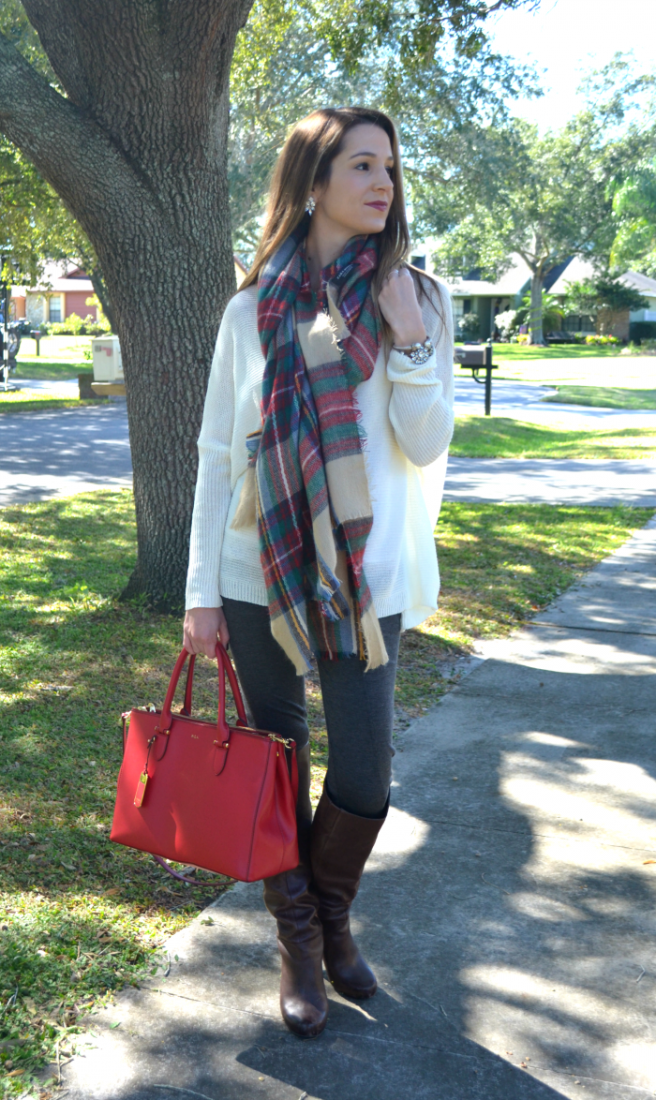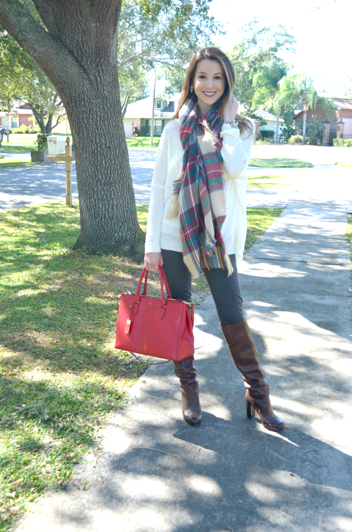 Sweater: Mimi’s the Look | Leggings: East & Lo | Boots: Nine West | Scarf: Zara | Bag: Ralph Lauren | Bracelets: J. Crew + David Yurman | Earrings: J. Crew | Ring: Kohl’s | Sunglasses: Marc Jacobs | Nails: Essie Recessionista