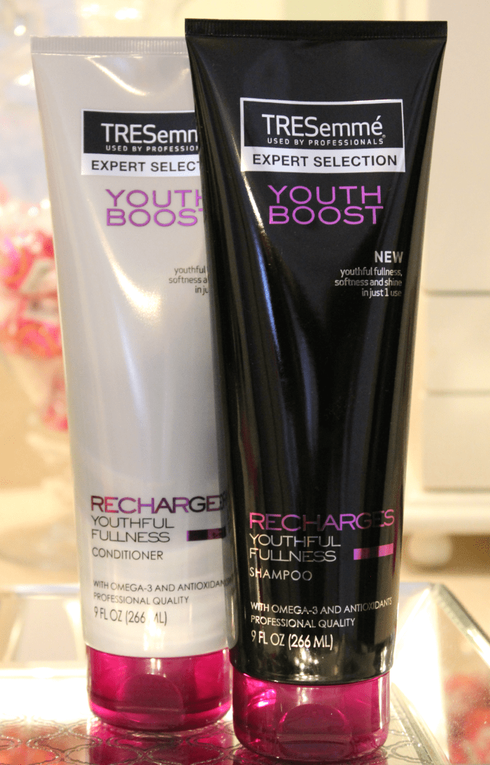 You need to start with completely clean hair, and the TRESemmé Youth Boost line is the way to go. Their formula is jam-packed with Omega-3s and antioxidants that leave your hair soft and shiny after each and every use, including the first one.