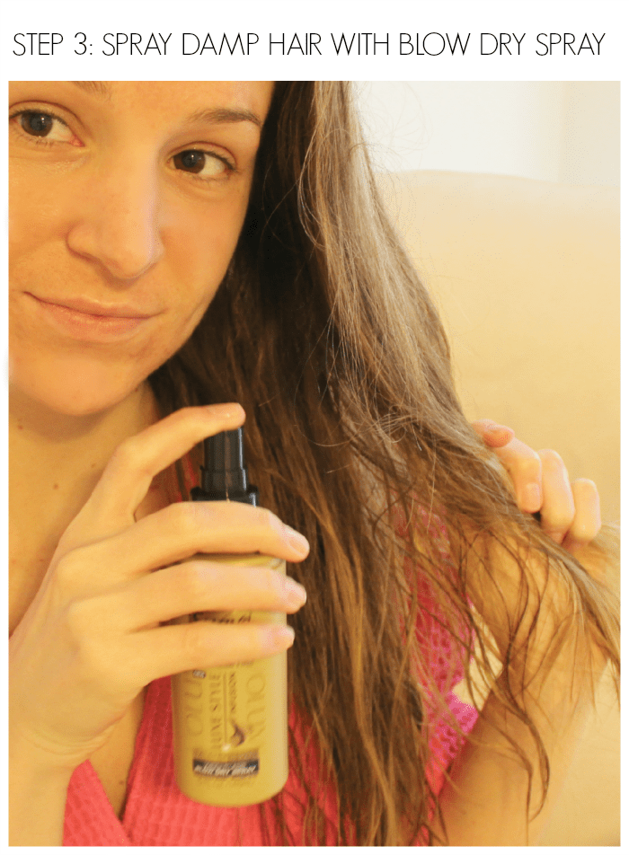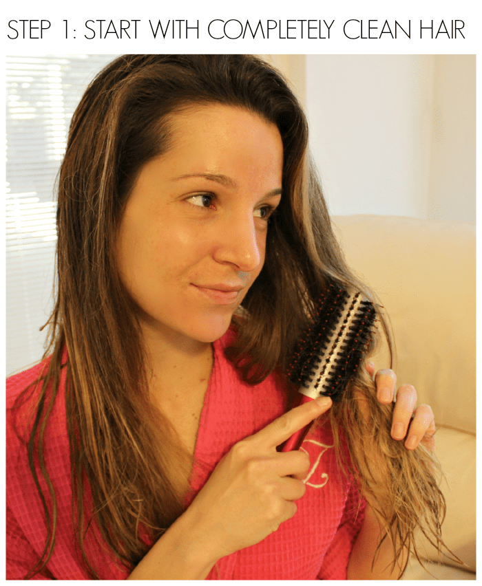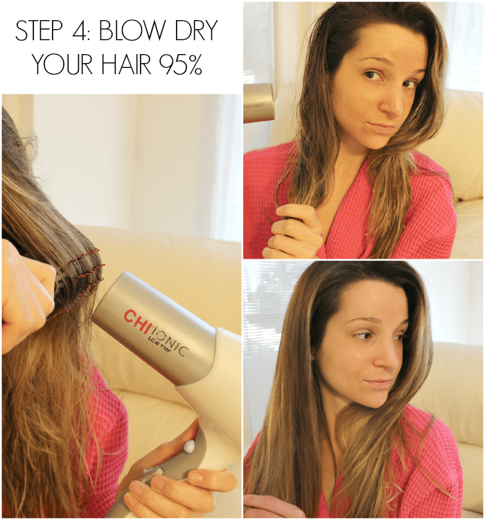 Next is the blow dry! Using a round brush, blow dry your hair up and away from your face until it’s about 95% completely dry.