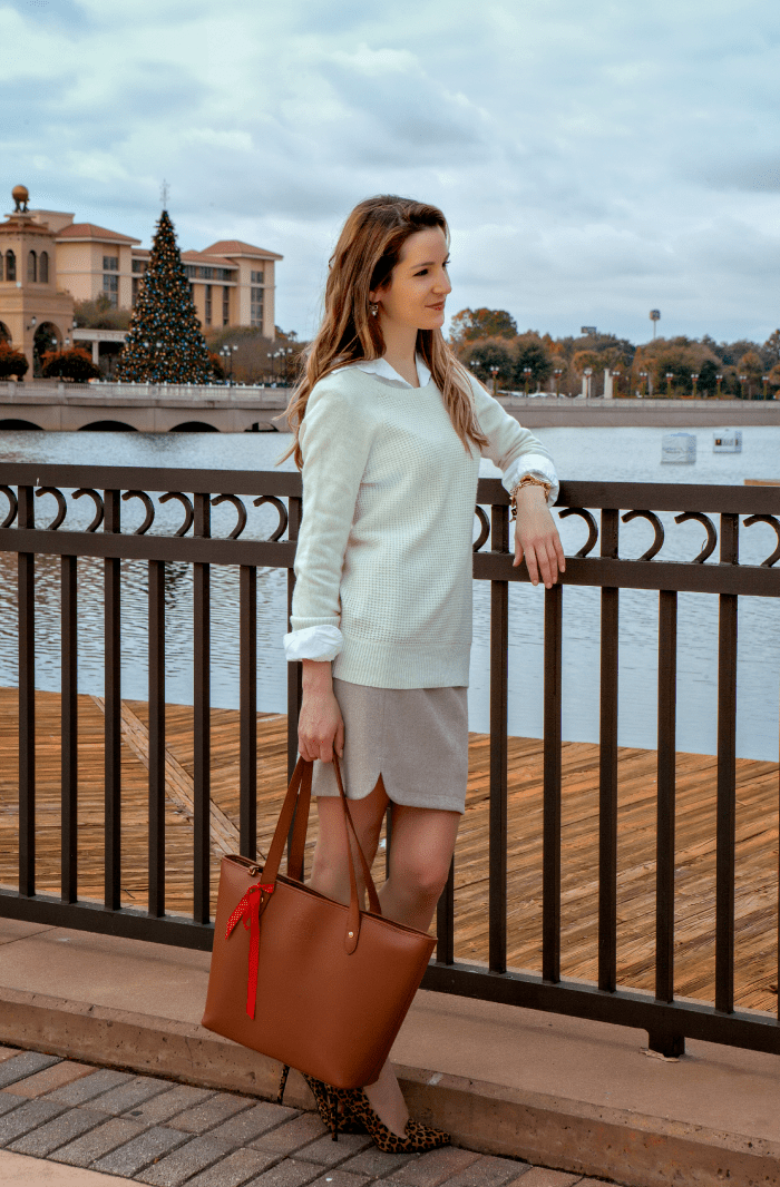 I’ve said it before, and I’ll say it again, I take the term “nerd” as a compliment. Excuse me for liking math and knowing how to program computers. You know what I hear when someone throws around the “nerd” term? A 6-figure salary, that’s what. All jokes aside, I do embrace my geekiness with open arms. Aside from the fact that I like Star Wars and can beat anybody in any game on the Nintendo 64 console, my quirky qualities are relatively mild. I do, however, love dressing the part. In my ostentatious industry, you’re judged so heavily upon what you wear. Since I am a young female, the trendier I dress, the less likely I am to be taken seriously on a first impression. For that very reason, my go-to work outfit is conservative and classic, while still adding pops of color and flare where appropriate. This example of young professional office attire is neutral and non-offensive, yet it features one of my favorite winter colors in this insanely cozy J. Crew mint waffle sweater and adds a bold touch of animal print with LC Lauren Conrad leopard heels. Check out full outfit details at the bottom of this post.